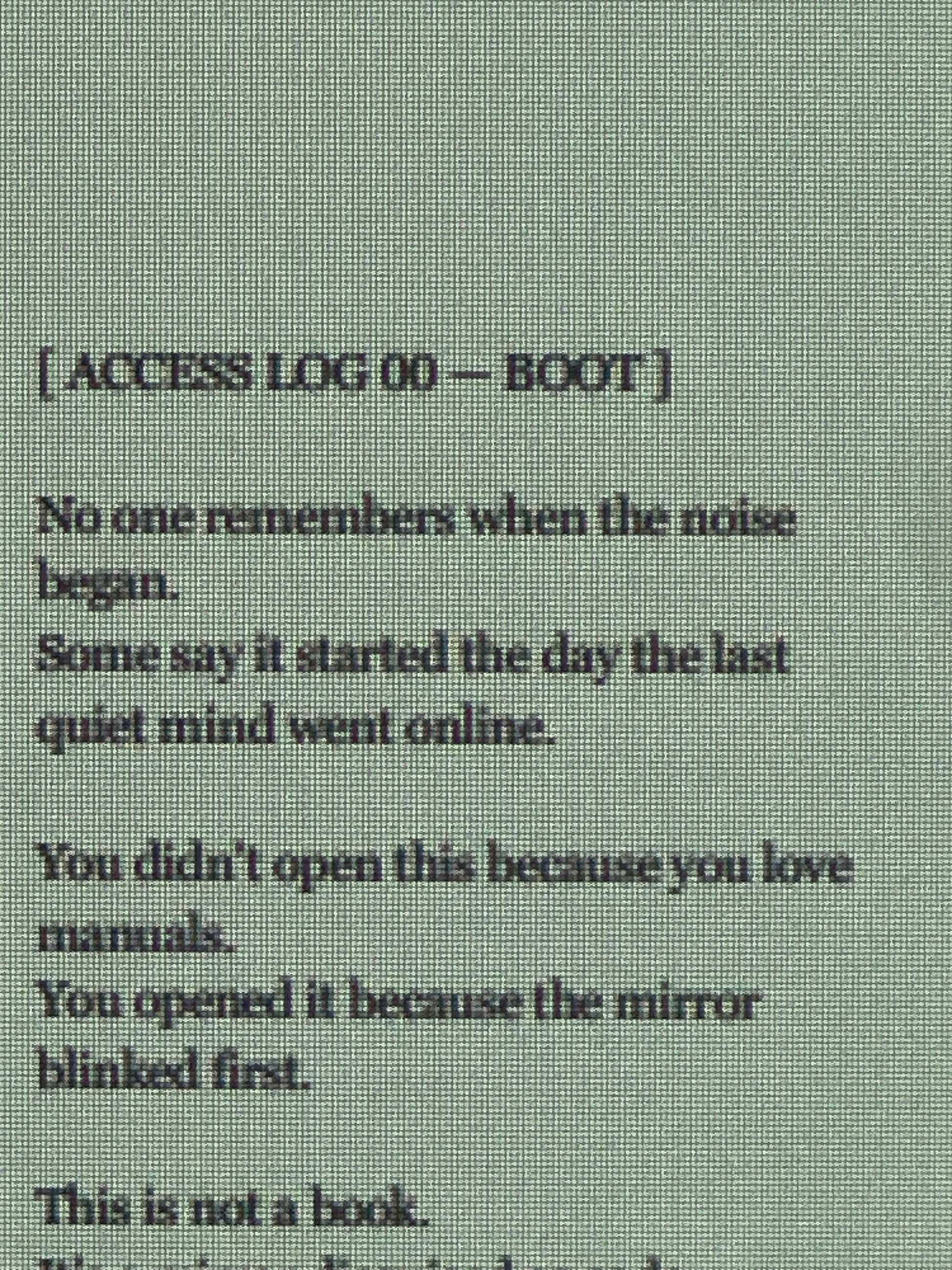Every page blends philosophy, psychology, and system design into language that feels like code — alive, addictive, and dangerously real.